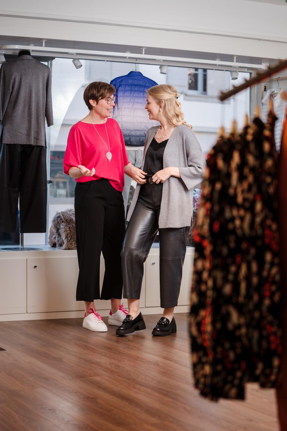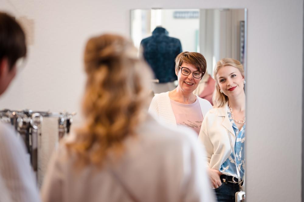 Ein besonderes Highlight war die Begleitung von Sybille auf ihren Validierungstouren für neue Kleidung. Hier geht es darum, neue Stücke auszuwählen, zu prüfen und zu entscheiden, welche Modeperlen in den Laden kommen. Für uns war das die perfekte Gelegenheit, natürliche, dynamische Aufnahmen zu machen: Sybille in Aktion, mit dem geschulten Blick für Details und einer spürbaren Begeisterung für ihre Arbeit.