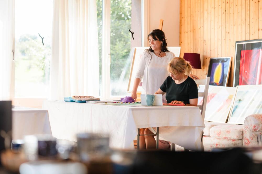 Ein besonders intensiver Moment des Tages war, als ich Marianne während einer ihrer Malkurse begleiten durfte. Mit unglaublicher Hingabe vermittelt sie ihren Teilnehmern die Freude und Begeisterung für das Malen. Es war faszinierend zu beobachten, wie sie in jedem von ihnen die Begeisterung für die Kunst entfachte und wie sie ihre eigenen kreativen Prozesse teilte.
